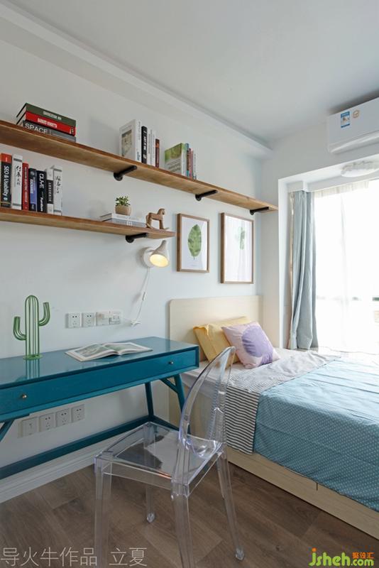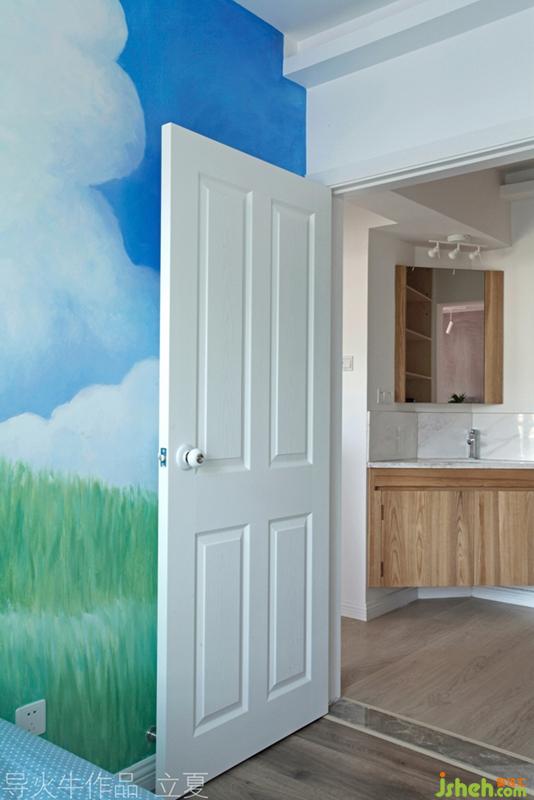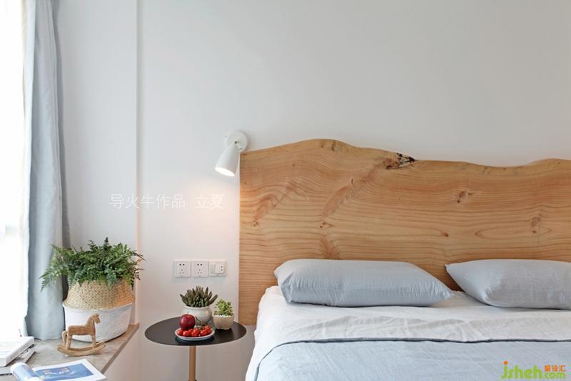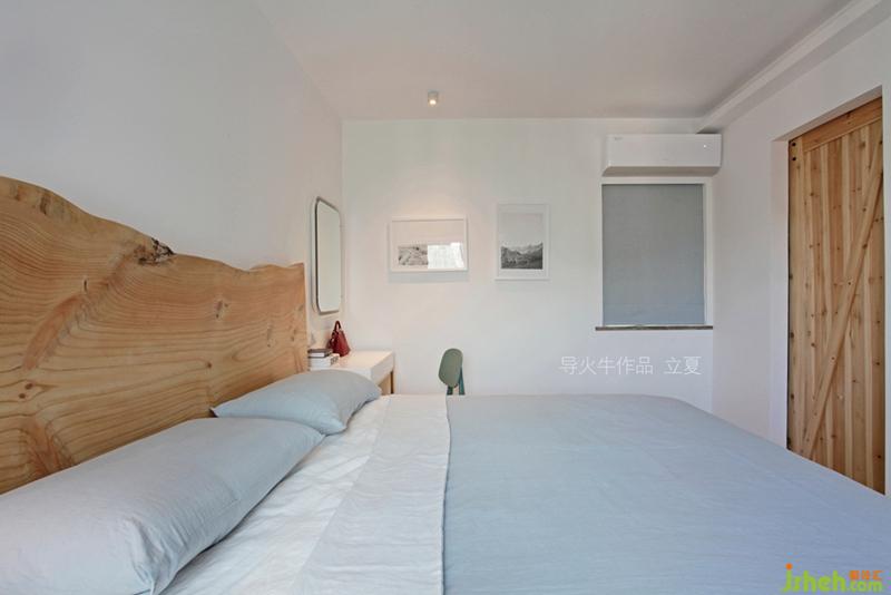 獨(dú)一無二的整板松木,刷上清漆就是床頭背板,大面積留白的墻面,讓松木形狀和紋路有一些山水的意境。