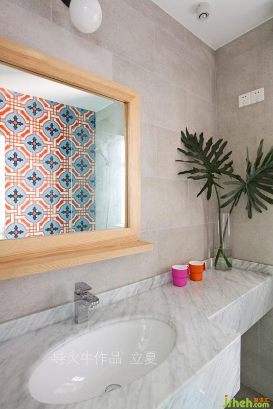走廊旁邊洗手間里的防水軟木地板和異域風(fēng)情墻磚
