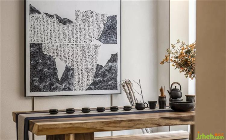 借助設(shè)計(jì),不同的理想生活被融匯共生,多樣化的生活方式在不同空間呈現(xiàn)。而在該空間中,水墨趣味和精致物件則帶來(lái)東方寫意美,設(shè)計(jì)師擺脫沉悶的配色,用素凈打造空間的通透與朦朧。
