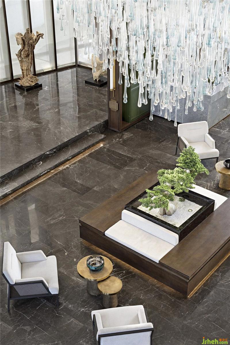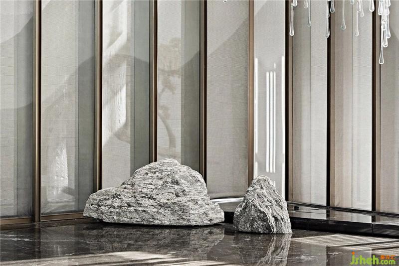 深圳售樓處設計大理石漆黑如夜,又如平靜的湖水,將一切倒影收入,虛幻與真實相對而立,有時界限分明,有時融為一體,讓人迷惑。