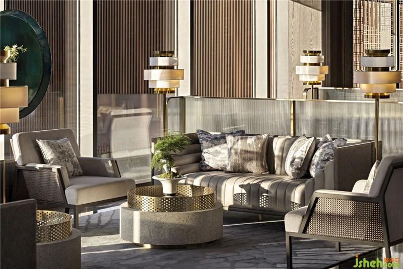 主要材料:大理石、木飾面、布藝硬包、拉絲不銹鋼