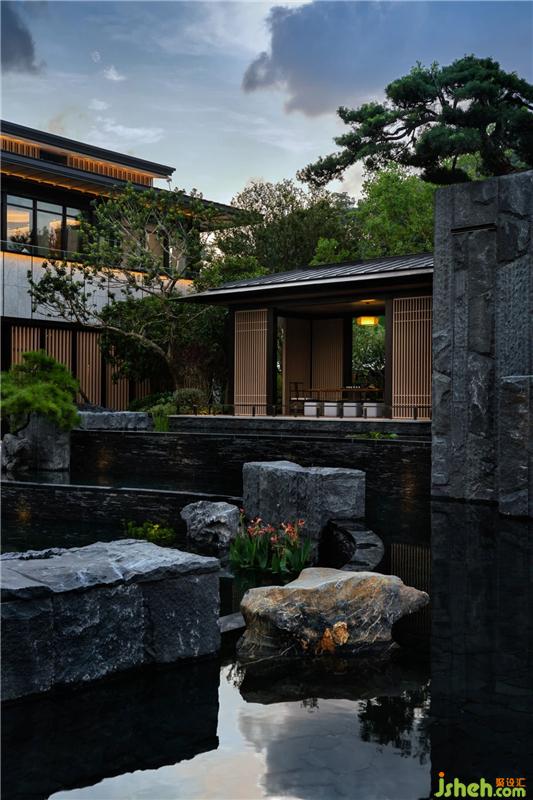 “水榭宜時(shí)陟,山樓向晚看”,亭臺水榭隱逸著清雅,隔水矗立的親水涼亭以形造境,儒道并蓄,動靜相蘊(yùn),于空間中孕育出禪意之風(fēng),掩映在盎然的綠意中,伴隨著茶香四溢,裊裊煙霧。來客以茶入詩,以茶抒懷,茶之三味,皆入情境之中,大抵沒有人不愛這般閑適安逸的日子。