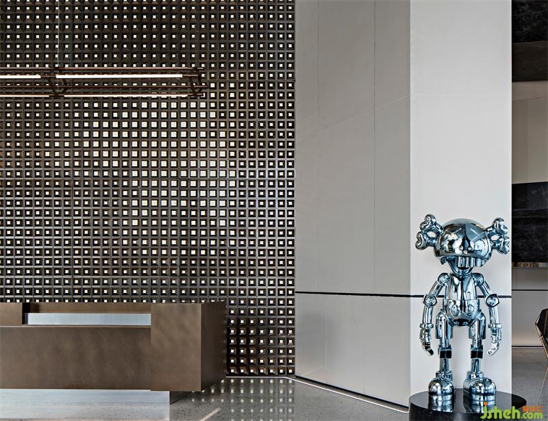 充滿(mǎn)藝術(shù)氣息的吊燈,現(xiàn)代工藝對(duì)金屬材質(zhì)的雕琢,與銀幕相疊加呈現(xiàn)視覺(jué)效果。