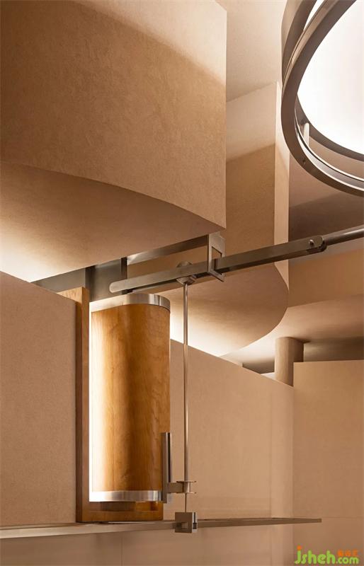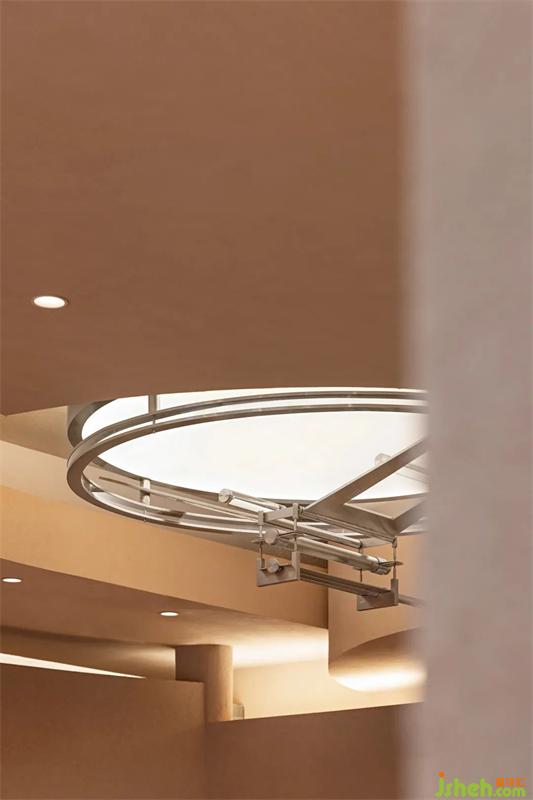 門頭構(gòu)造、燈具裝置是通過帆船支撐、揚帆、打開的一系列細(xì)節(jié)和過程組合而成的結(jié)構(gòu)裝置構(gòu)造的轉(zhuǎn)換,在金屬的包裹下,襯托綿延起伏的內(nèi)部空間,打造新鮮的質(zhì)感和記憶。