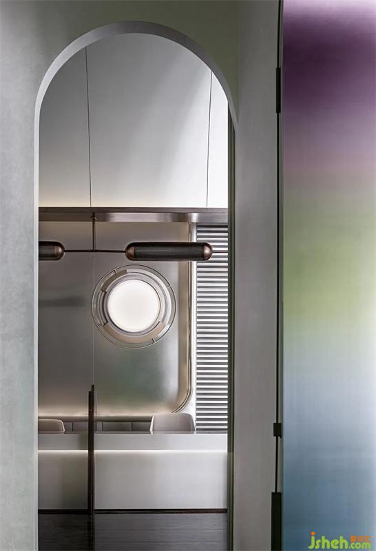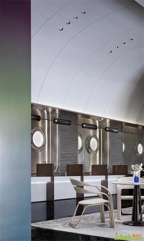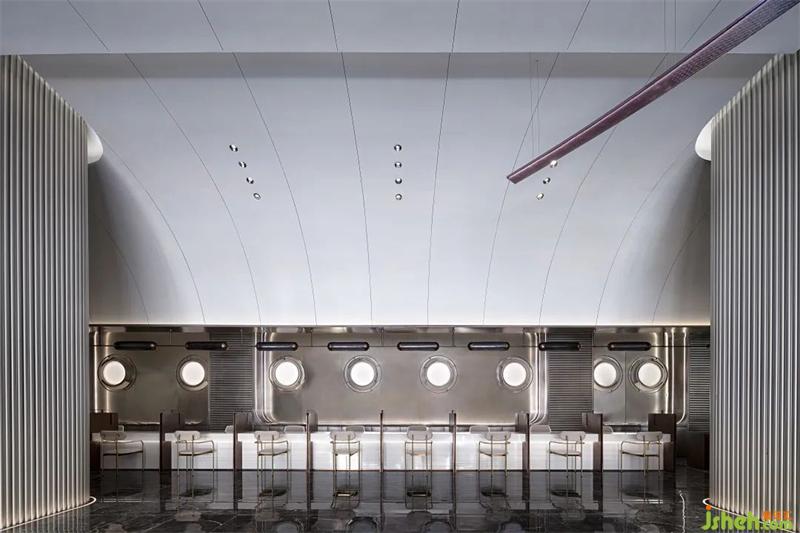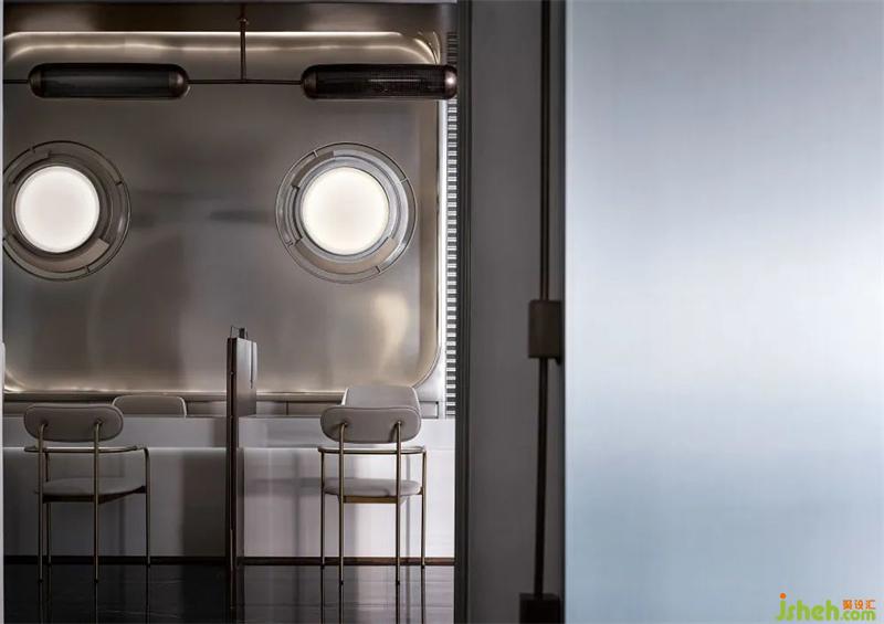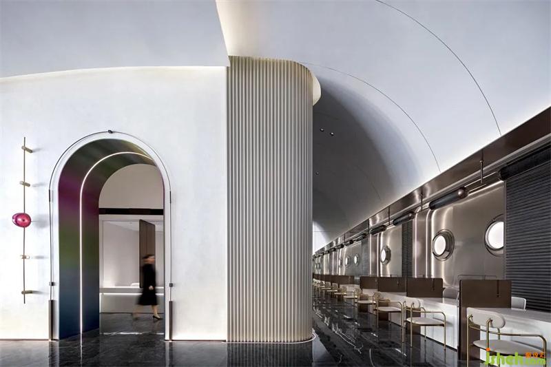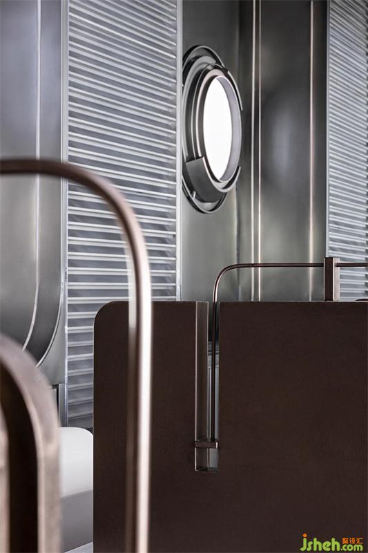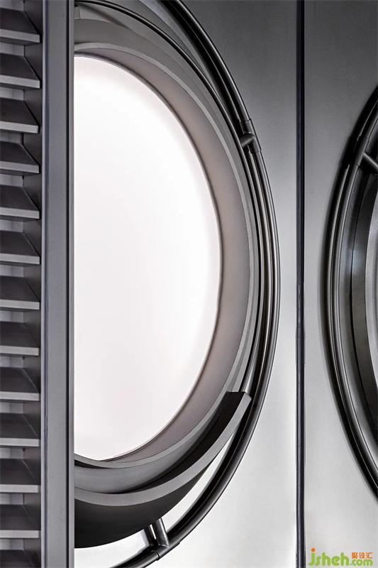 空間所引導(dǎo)的行為和體驗,較之前場區(qū)域形成了某種情感上的遞進,而這一部分,由通過金屬材質(zhì)的對比、圓形尺度的掌控,抽象的星際專列由此予以實現(xiàn)。
