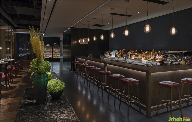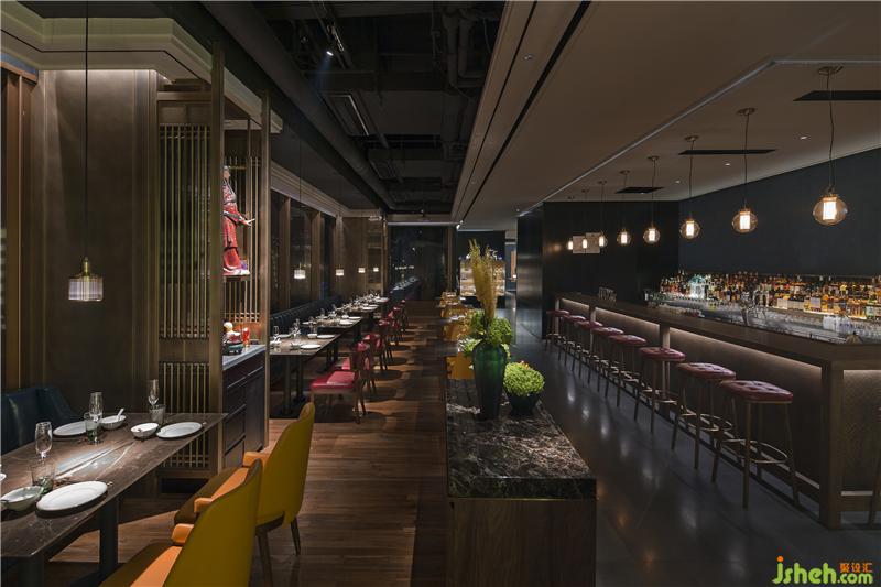 “為摒棄無用的裝飾,集中所有精力引景入室,于是景致源頭的餐飲檔口和酒吧區(qū)就成為了空間的重點?!?