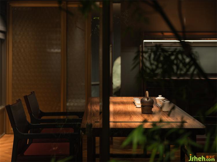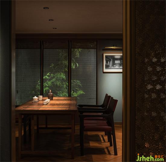 龍吟九品餐廳設(shè)計竹旁茶軒,頗具古意,與誰同坐,焚香品茗,酌酒對弈,亦是一件雅事。