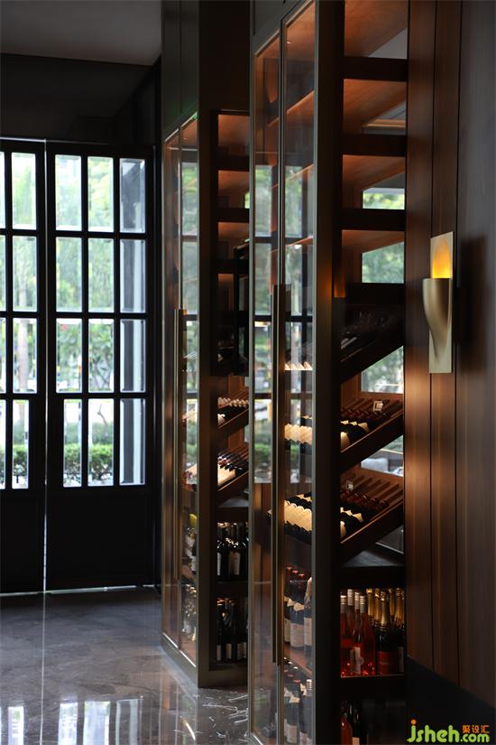 徐記海鮮餐廳設計金屬壁燈與階梯橙光相輔相成,實現(xiàn)門廳和入口空間基調中妃色、赤黃再到赭的色彩一致性,藝術、光影在此雜糅。