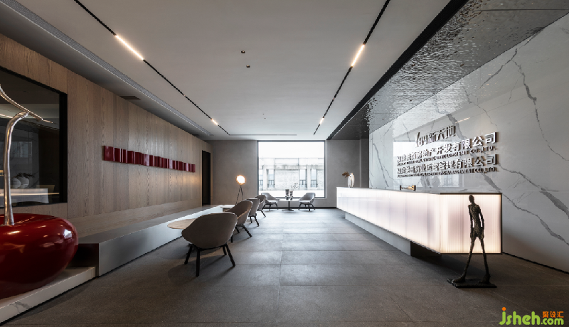 前臺相較于辦公空間的暖色輕松氛圍