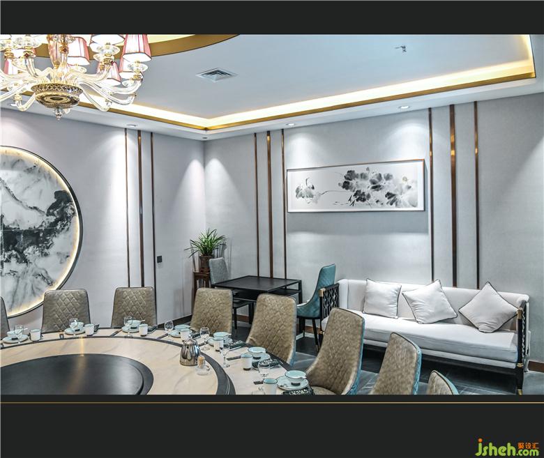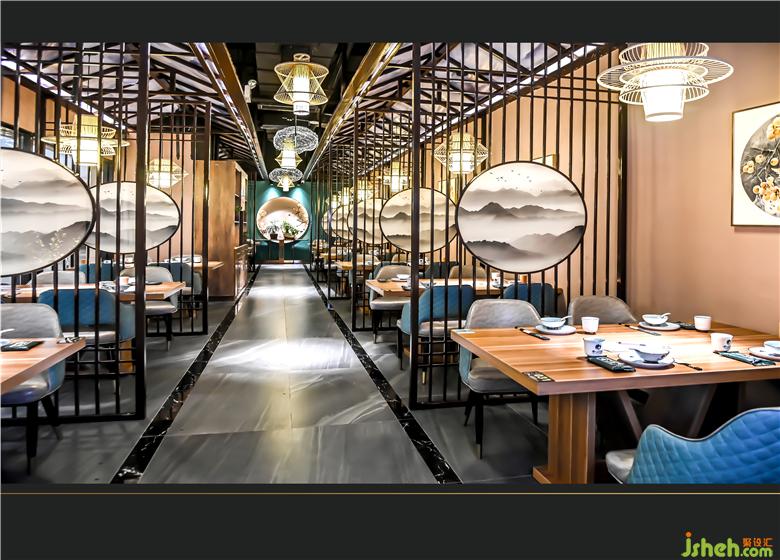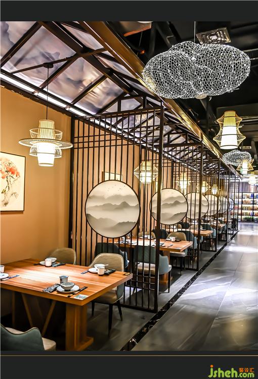 我們從“南山翁”的處世精神里汲取靈感,截取“亭臺”“屏風”等微妙元素,打造“歲夜高堂列明燭,美酒一杯聲一曲”般意味的新中式餐廳。餐廳設(shè)計