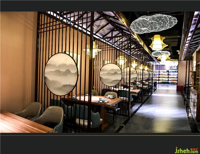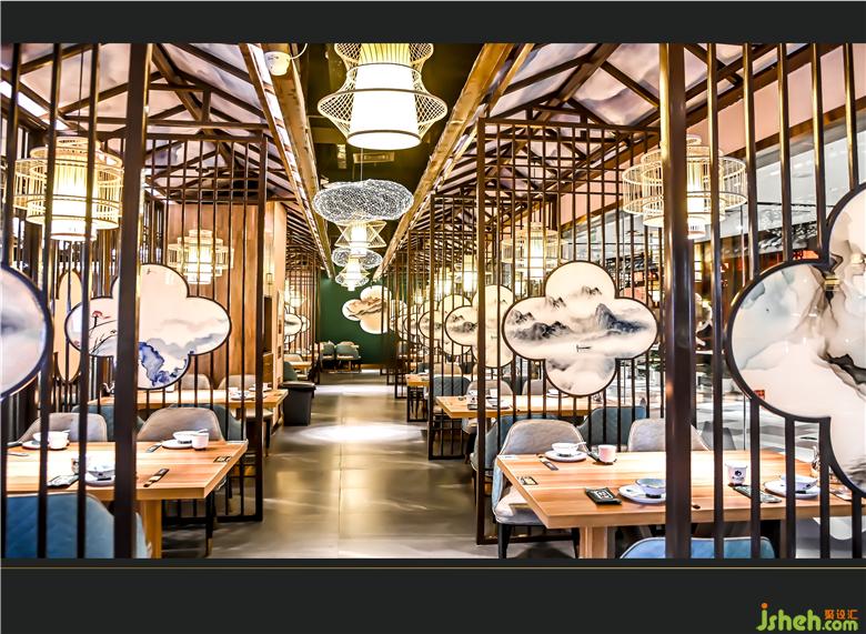 東方審美的高級感在隔斷上大有講究,雅間用水墨丹青映襯的屏風(fēng)隔開,既將空間區(qū)域劃分開來,又保證了空間的視覺寬敞感,輕薄而不占地面面積。整體上儒雅而嫻靜,含蓄而深美,一種悠然自得蕩然心間。餐廳設(shè)計(jì)