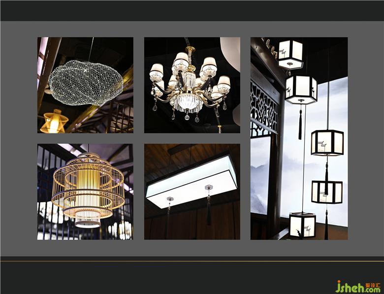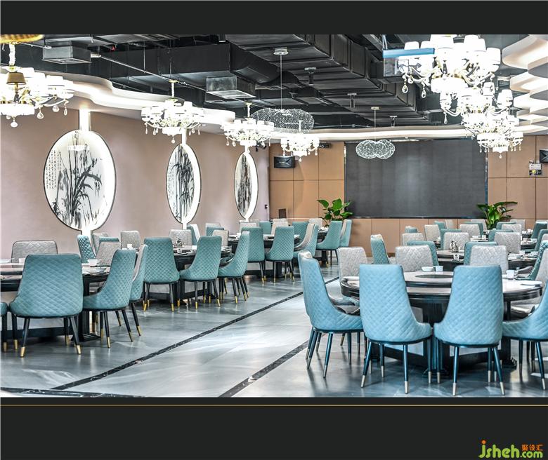 包廂過道燈上作畫,畫中有景,水墨燈光,曳致生輝,壁畫主題分明,斑斕中窺得一絲祥和。包廂華燈映射到墻上的山水畫,靜謐而溫和,莊重中透著一絲素雅。餐廳設(shè)計(jì)