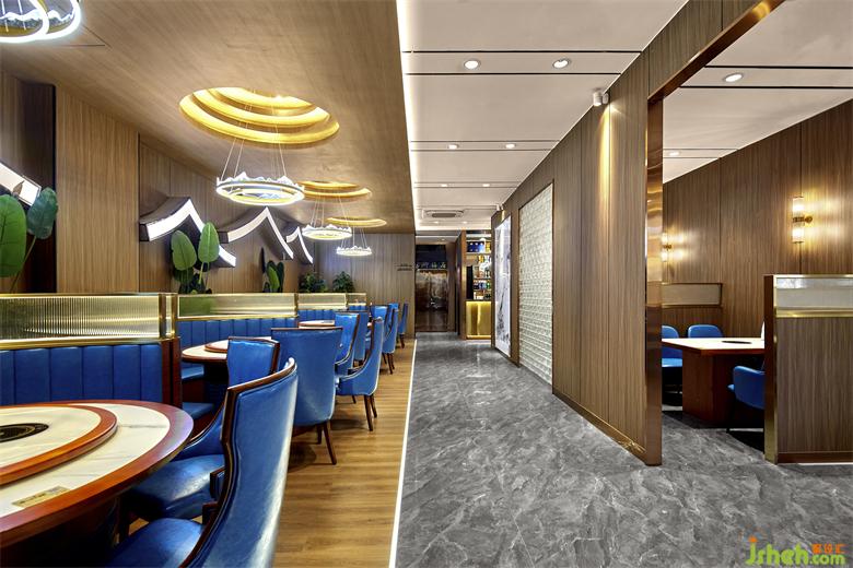 大廳設(shè)計(jì)立足于傳統(tǒng),又施之以創(chuàng)新。餐廳設(shè)計(jì)以黃銅和金屬線條為元素,呈現(xiàn)出濃郁東方情調(diào)的輕奢之感,同時(shí),鋪上灰色大理石地磚,木質(zhì)的裝飾,同色系的餐桌等,這些裝飾都在營(yíng)造餐廳的高雅風(fēng)韻。