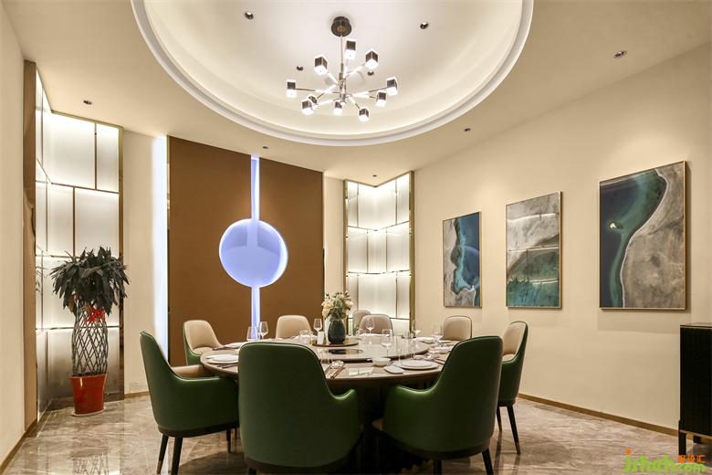 海鮮餐廳設(shè)計(jì)頂面構(gòu)造似深海之淵,給予空間維度與立體感,仰頭一望的澎湃想象在這一刻凝固,對(duì)于海洋的無(wú)畏于向往在空間彌漫。