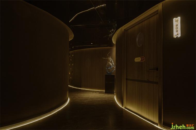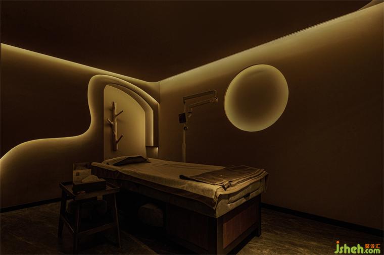 大片的花海之下,映襯著無規(guī)則的燈帶大門。養(yǎng)生會(huì)所設(shè)計(jì)以光影為敘述語言,在橫向通透,縱向通達(dá)的空間里,通過光影渲染給空間注入力量與生命靈性,創(chuàng)造出新的生機(jī)。