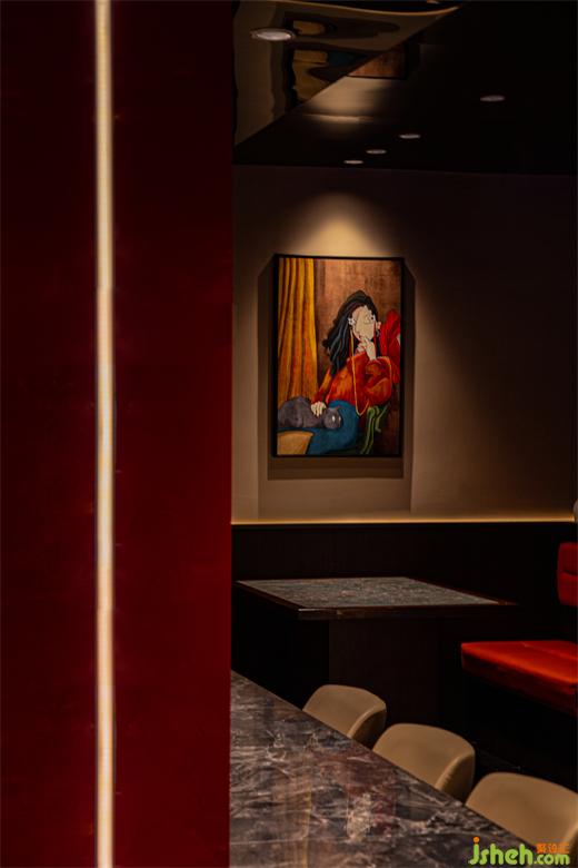 卡座的設(shè)置,悄然間打破空間炙熱與升騰的氛圍,在空間色彩中尋找新的平衡美感。就像火焰的余溫一樣,雖然強(qiáng)烈的愛讓生活熾熱,但余生的歲歲年年卻是一日三餐的溫暖。