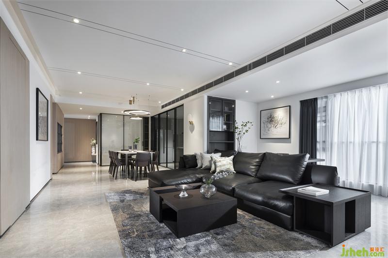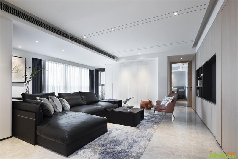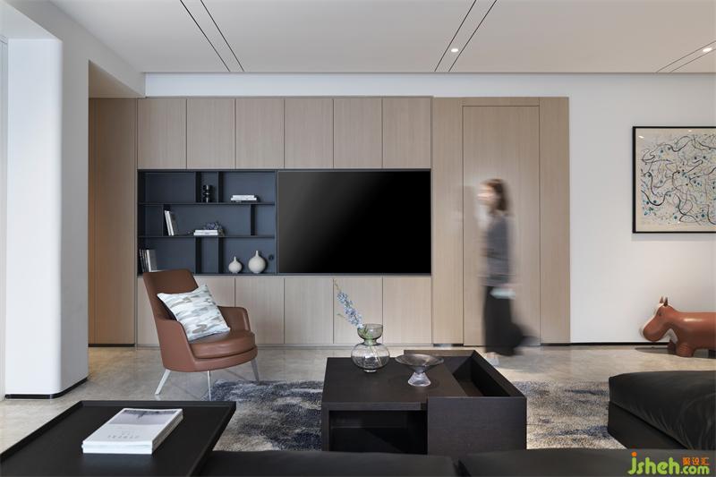匠心獨(dú)具的細(xì)節(jié)美學(xué)處處彰顯著設(shè)計(jì)的巧思,客廳和餐廳墻面柜嵌入到墻體無(wú)死角無(wú)縫隙,中間開(kāi)放格設(shè)置超薄隱形燈帶,上下隱形柜暗彈無(wú)把手,既滿足 了強(qiáng)大的儲(chǔ)物需求又滿足了空間美感.