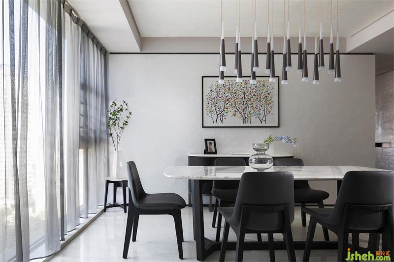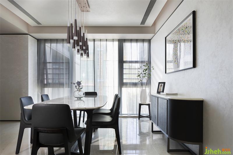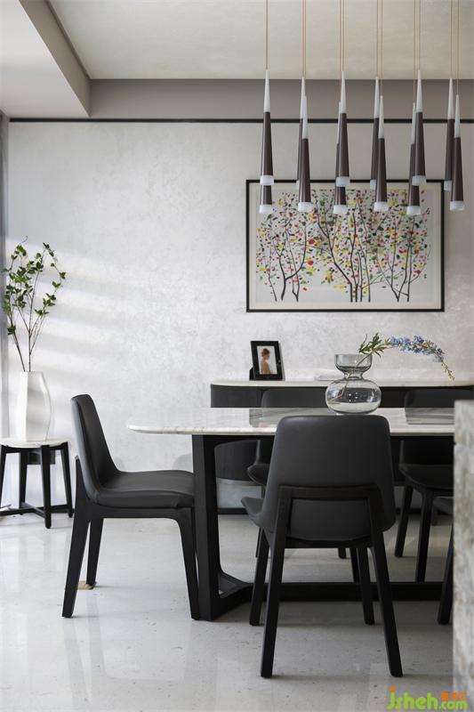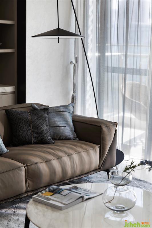 整個客廳墻面留白,延伸東方美學與時尚的融合,穩(wěn)重的褐色貫穿其中,形成高反差的色調(diào)對比,在追求當代生活方式的同時不忘將東方美學融入其中,回歸生活本質(zhì)。