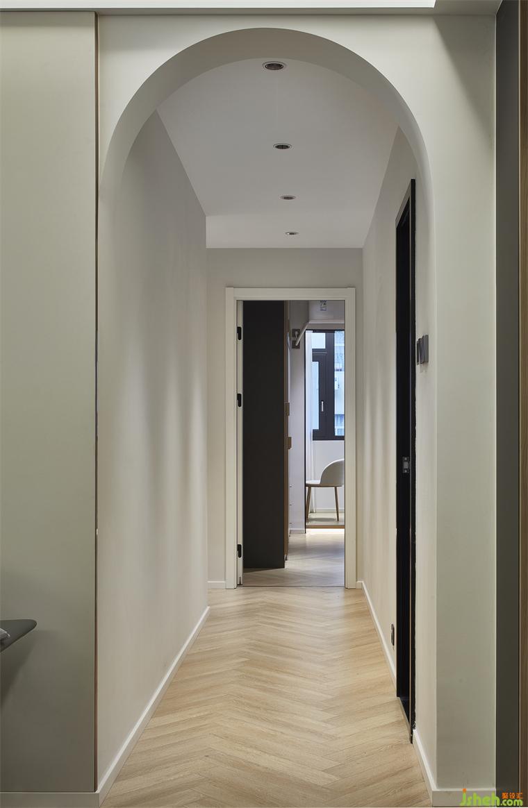 過道與客廳一體設(shè)計(jì),裝修設(shè)計(jì)采用簡(jiǎn)約風(fēng)嵌入式暖色筒燈,給予了溫馨與浪漫氣息的氛圍感。