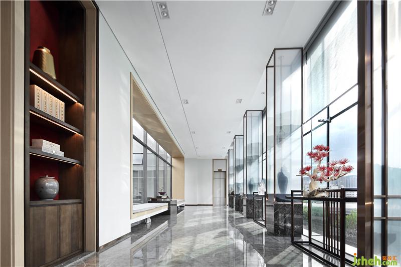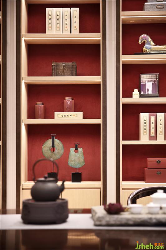如果說展廳空間是相對硬朗理性的,那在會館的接待室內(nèi),我們更希望它是偏向深諳東方之氣韻,為使用者提供一處寧靜、舒適的體驗場所,于平淡中有驚喜,于回歸中有人性溫暖。淺金色金屬與中式玻璃,傳統(tǒng)中式框架下的柜體與案臺,會所設(shè)計現(xiàn)代中式的色彩與材質(zhì),在VIP品茶室與會晤室體現(xiàn)著有如謙謙君子的厚重與氣質(zhì)。在VIP室等重要區(qū)域的集散地,在整體統(tǒng)一的基調(diào)上,不存在呆滯的文化符號,卻充盈著墨韻馨香的靈動氣息,培養(yǎng)出空間的平衡感和格局觀。會所設(shè)計