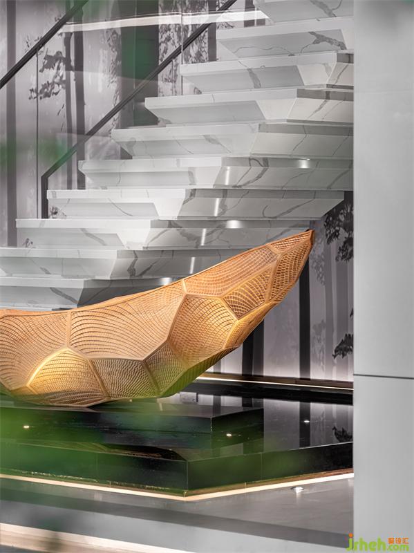 ”急雨才收翠色新,長青樹上露沉沉,迷蒙白霧輕如許,欲上秋空作暮云“——寂蓮法師。水滴形漸變光藝術吊燈,意若南方林間小雨,溫潤大地萬物,水生萬物,帶來希望與未來。