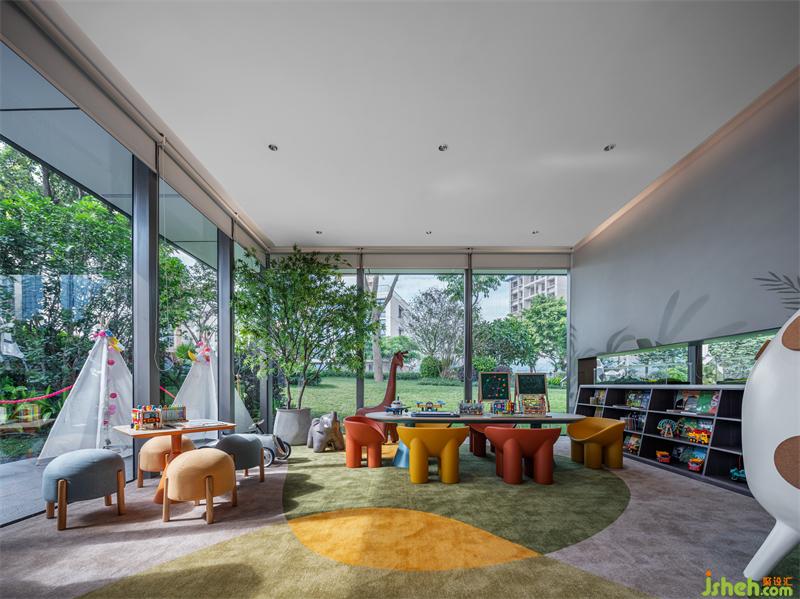售樓處設(shè)計(jì)洗手間過(guò)道以當(dāng)?shù)丨h(huán)境特點(diǎn)為靈感,模擬山林隱逸的生活環(huán)境,立體出世,抽象而不抽象。螞蟻的觸角在試探正如兒童的對(duì)未來(lái)無(wú)限未知的興趣,兒童區(qū)的山林趣味性。