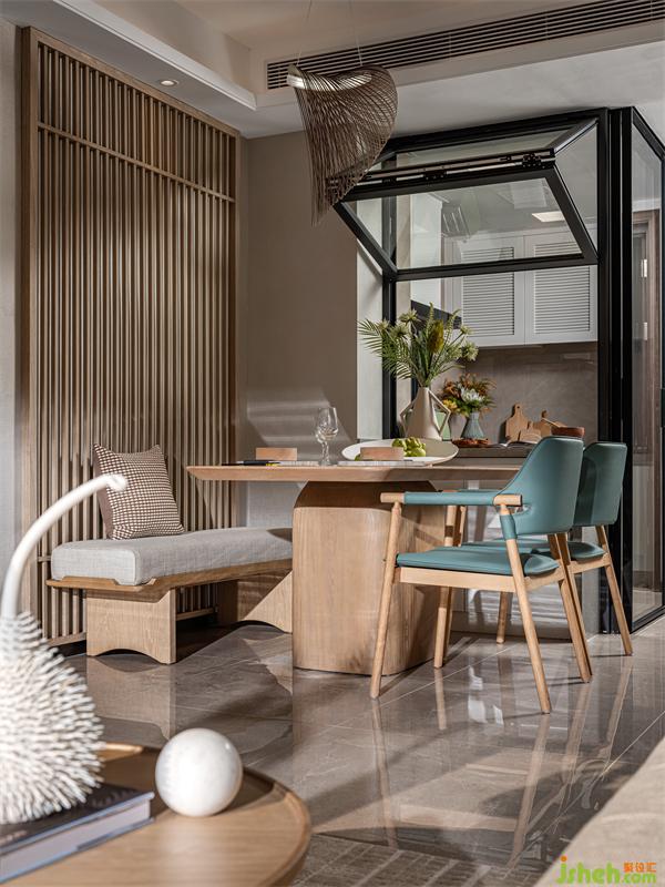 尖崗山下屋,鐵崗湖畔居,鳳鳴水岸95平方戶型樣板間,樣板間設(shè)計(jì)師擬以理想湖林山居的意識(shí)形態(tài),描述那淡泊悠遠(yuǎn)靜享歲月、那日常平和的一天。