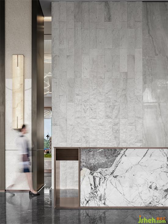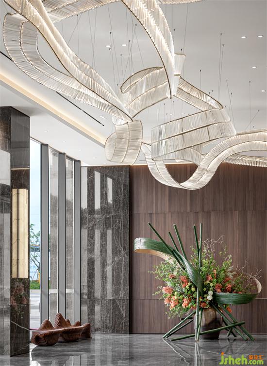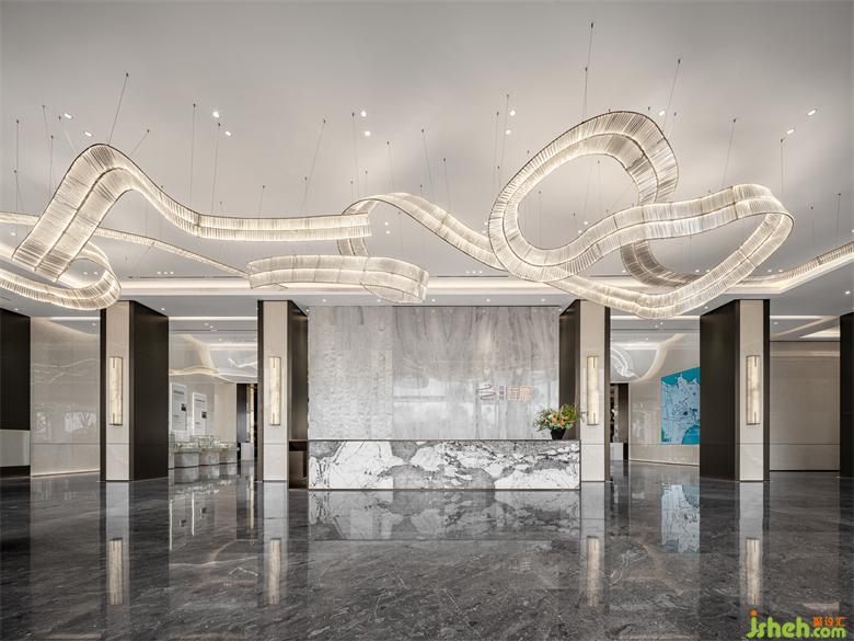 融合現(xiàn)代建筑感的有序節(jié)奏排柱,招商體驗(yàn)中心設(shè)計(jì)結(jié)合自然的材質(zhì),形成一種步入式的儀式感從海岸線的形態(tài)中找尋靈感,將抽象與具象并存相糅合,配合接待區(qū)門口的兩張藝術(shù)曲線長凳,燈與家具使得靈動(dòng)與寧靜,粗獷與纖柔相呼應(yīng)。