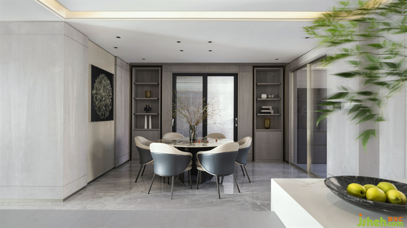 開放式吧臺增強(qiáng)了與餐廳的聯(lián)系,潘多拉奢石的餐桌,華麗卻不艷俗,猶如高貴的女王,氣場全開。餐椅選用簡約卻充滿細(xì)節(jié)的款式,沒有喧賓奪主,猶如溫柔的騎士,低調(diào)沉穩(wěn)。整個餐飲空間的每個角落都散