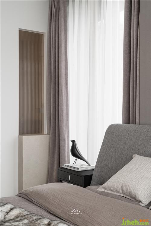 次臥內衛(wèi)通過墻體上方的高窗,引入外部的光線,頗具趣味性。