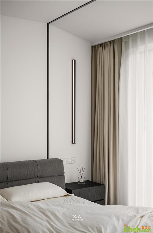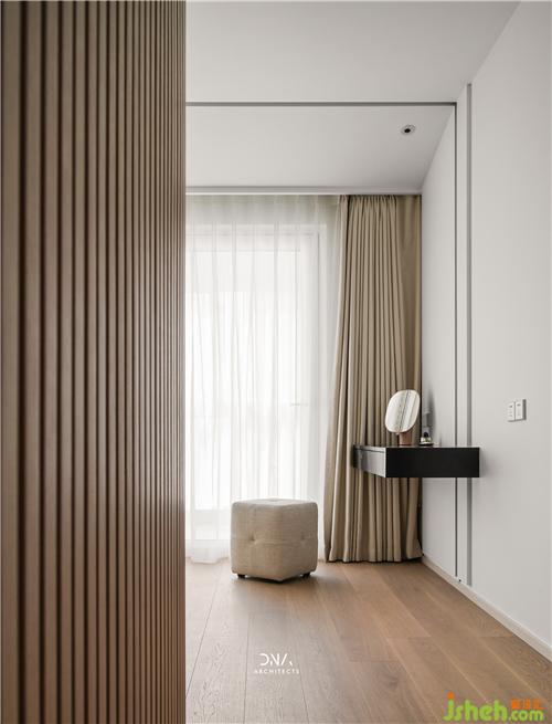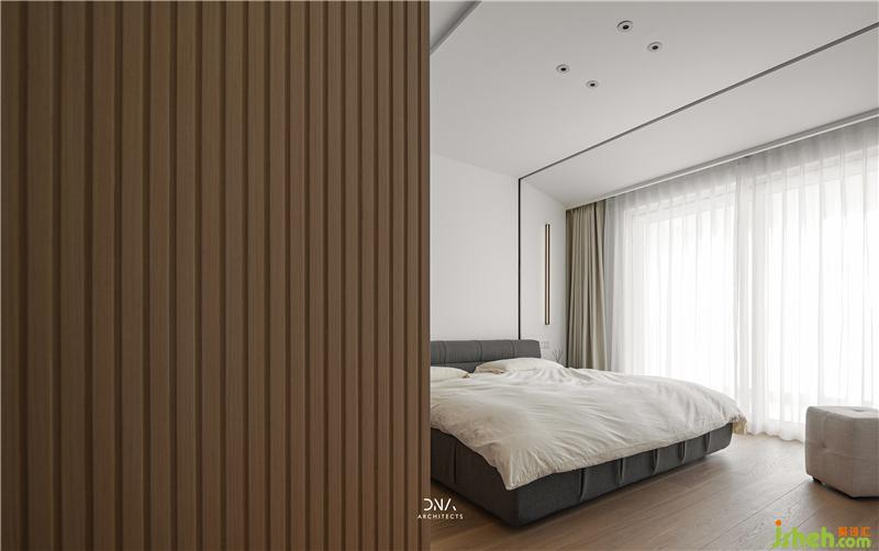 With two simple materials white and wood are used to express the quietness of the bedroom, and a strong sense of lines is used to further depict the details of the outline.