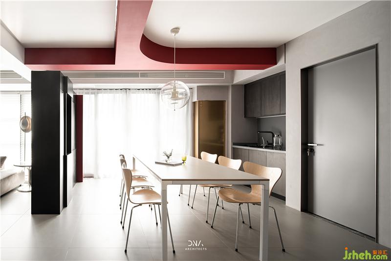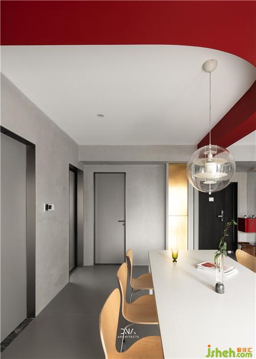 The design concept of color and geometry is strong enough, so the designer subtracted the door cover to break the routine. Create interesting interactive visions.