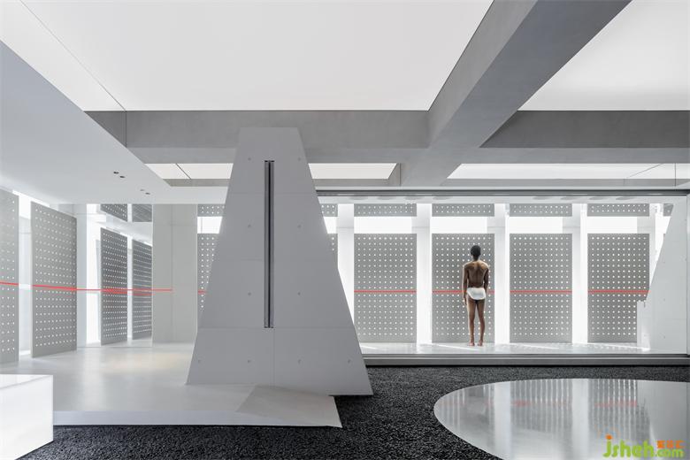 這是一個門窗系統(tǒng)展廳,一個以自然的設(shè)計語言去表達,最終呈現(xiàn)出未來和荒蕪感的空間。