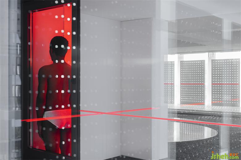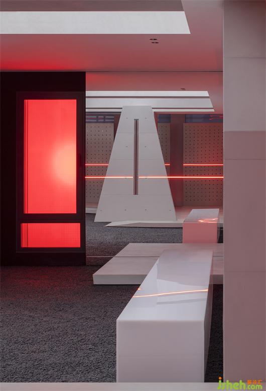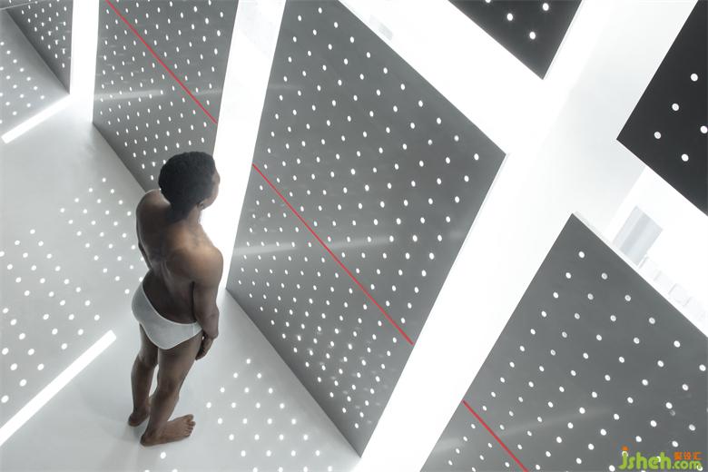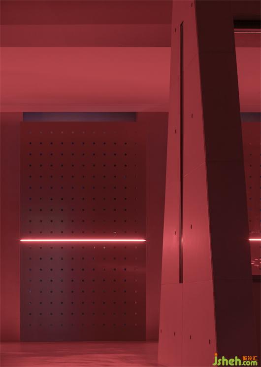 沖孔鋁板的存在建立了更直接的屏障去實(shí)驗(yàn)內(nèi)外的相對(duì)性,同時(shí)它是光影的途徑,展廳設(shè)計(jì)是將陰影的形狀和明暗的交替給直接表達(dá)給我們的載體。