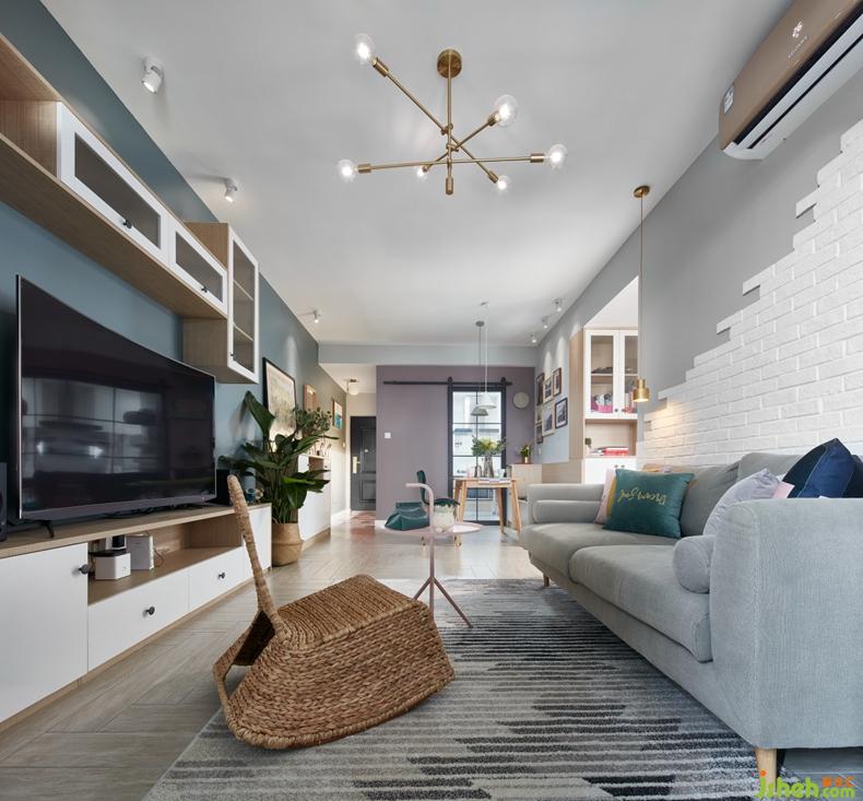 地面人字拼的木紋磚,再搭配墻面的灰綠色,自然的延伸貫穿了整個客餐廳區(qū)域。白色與原木色的家具點(diǎn)綴,讓空間層次有了立體感。美,不是唯一的焦點(diǎn),收納無處不在。餐廳的卡座,過道收納柜,電視組合柜,風(fēng)格的統(tǒng)一,顏色的搭配,無一不是面面俱到。設(shè)計(jì)公司