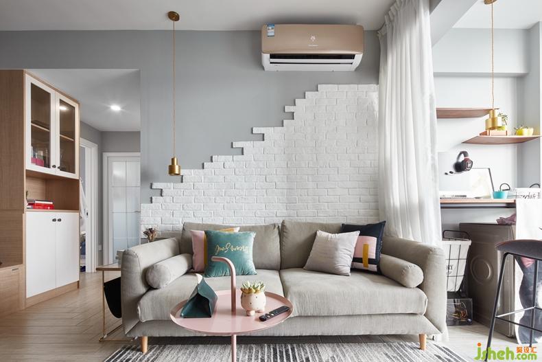 客廳有了電視墻的灰綠色,森林系的自然感純正細(xì)膩。襯托對比沙發(fā)墻的白色文化石,其粗狂的斑駁感,仿佛徜徉在復(fù)古的世界中。