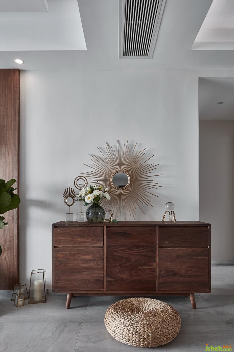 質(zhì)樸的材質(zhì),體現(xiàn)在每個(gè)角落,也處處與本套設(shè)計(jì)的主題相呼應(yīng)。菩墊與胡桃木自然紋理裝飾斗柜搭配,質(zhì)感的溫馨流露的簡(jiǎn)單明了。