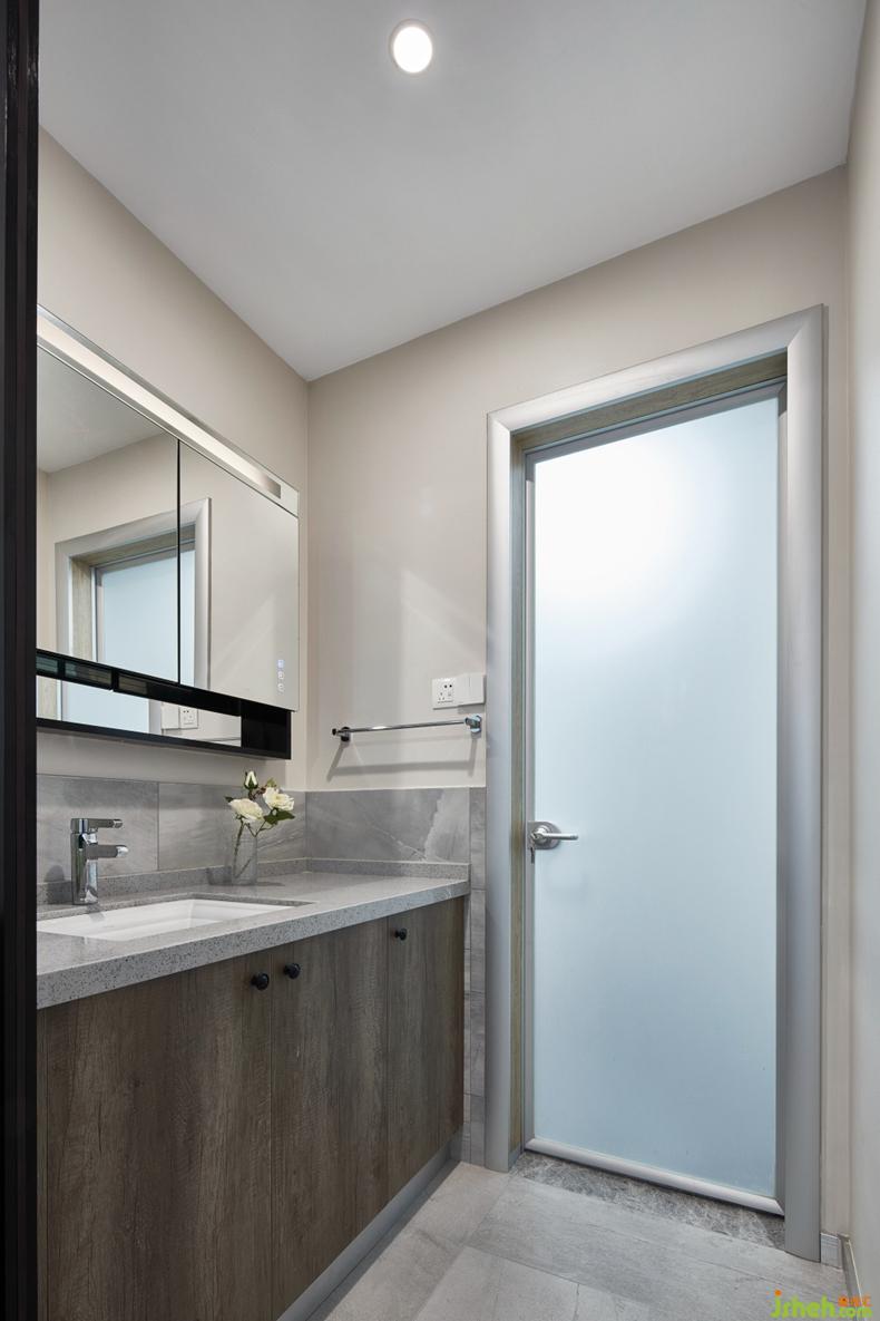 公衛(wèi)洗手臺采用外置設計,拓展過道實用性,同時也讓洗手間內部的實用性增強。簡潔的線條與木紋,在鏡燈的襯托下,顯得自然舒適。