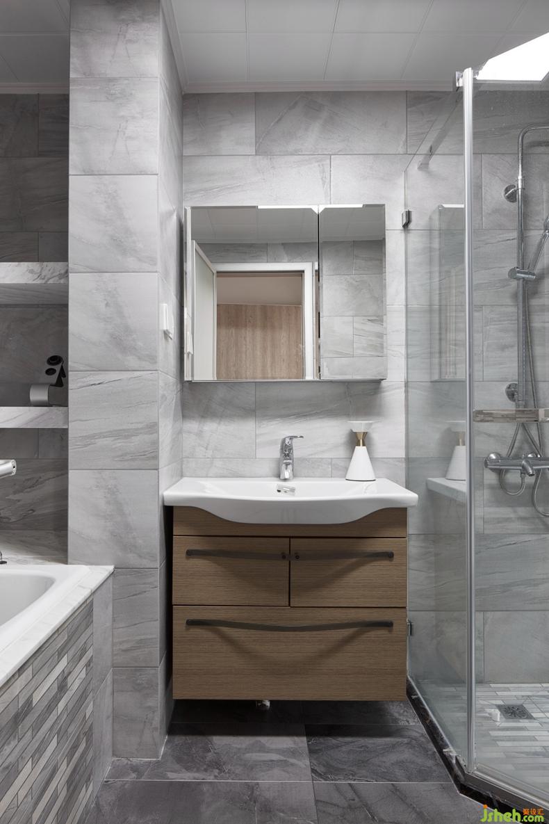 主衛(wèi)通過向主臥拓展,增加了浴缸的空間,利用承重墻的角落設計出壁龕的位置,美觀同樣需要使用來保證。