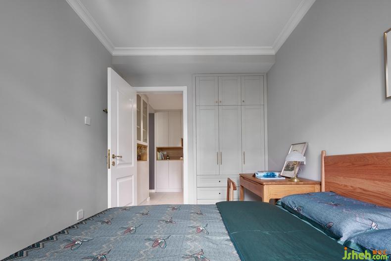 父母房的設計中采用簡單的色調點綴,紅橡木的實木床和書桌搭配,體現出紅橡的質感紋理及溫馨的色調,給空間增添讓人可以靜享的每片時光。