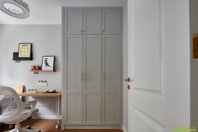 小孩房的設計中采用簡潔的手法,一改傳統(tǒng)卡通墻面,彩色墻面等熟透的標記。軟裝靈活的點綴出小男孩調皮活潑且?guī)в袎粝氲目臻g。