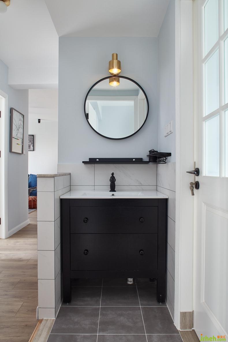 設計的外置式洗手臺,黑色與金色的搭配,在經(jīng)典中又來一次經(jīng)典。