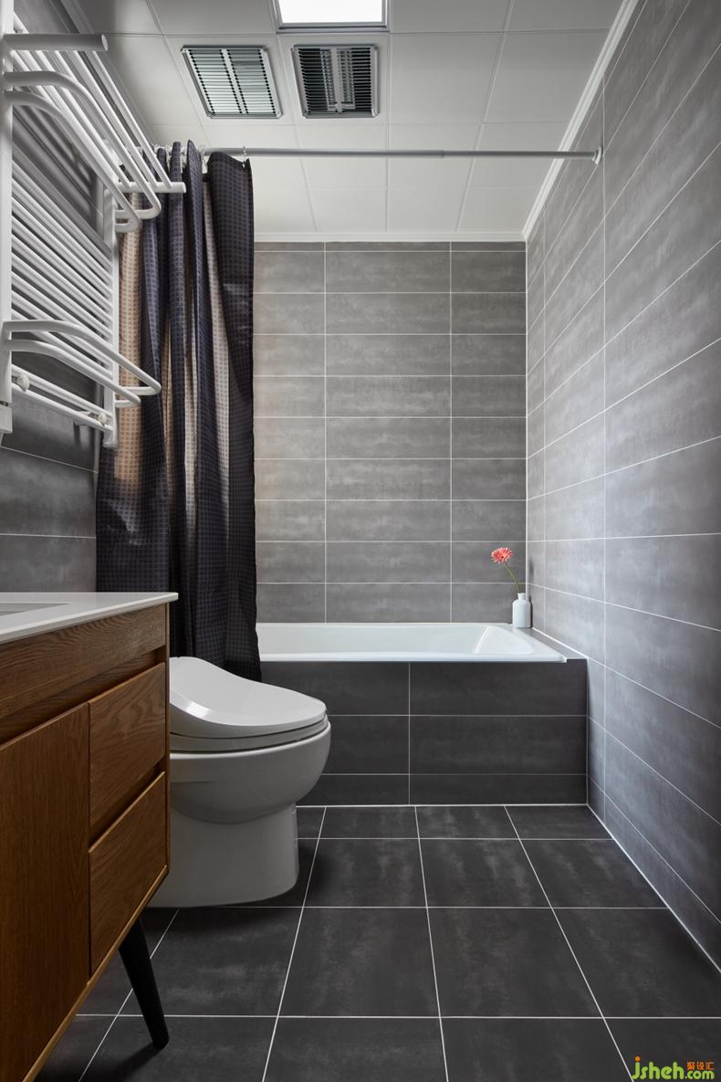 除了潔具,墻面地面統(tǒng)一灰色,在主衛(wèi)的私密空間誓將冷酷進行到底。浴缸角落的一支粉色的花朵,給人留下無限的遐想。