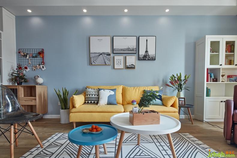 客廳:三人位的黃色布藝沙發(fā)為主角,而沙發(fā)墻面的組合掛畫,在內(nèi)容上選用灰色畫面,并搭配木質(zhì)邊框,給空間的和諧增添很多元素。