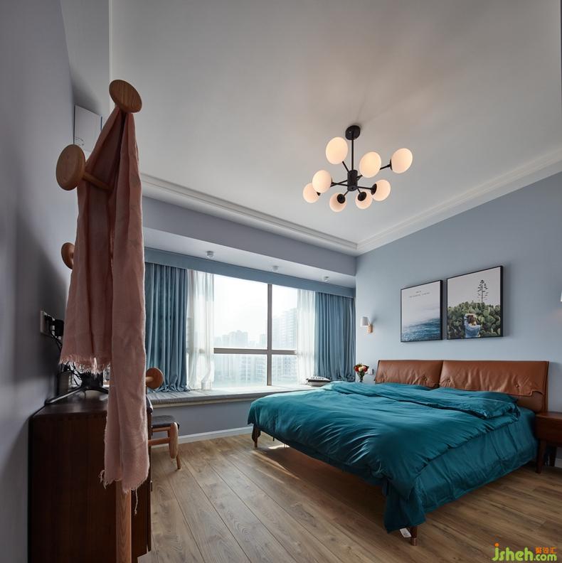 主臥:墨綠的床品主色與床頭掛畫(huà)的山景海景呼應(yīng),給臥室?guī)?lái)的是那片有故事的幸福畫(huà)面。夕陽(yáng)西下,坐擁在沙灘,一切美好的故事都有期待的暢想。