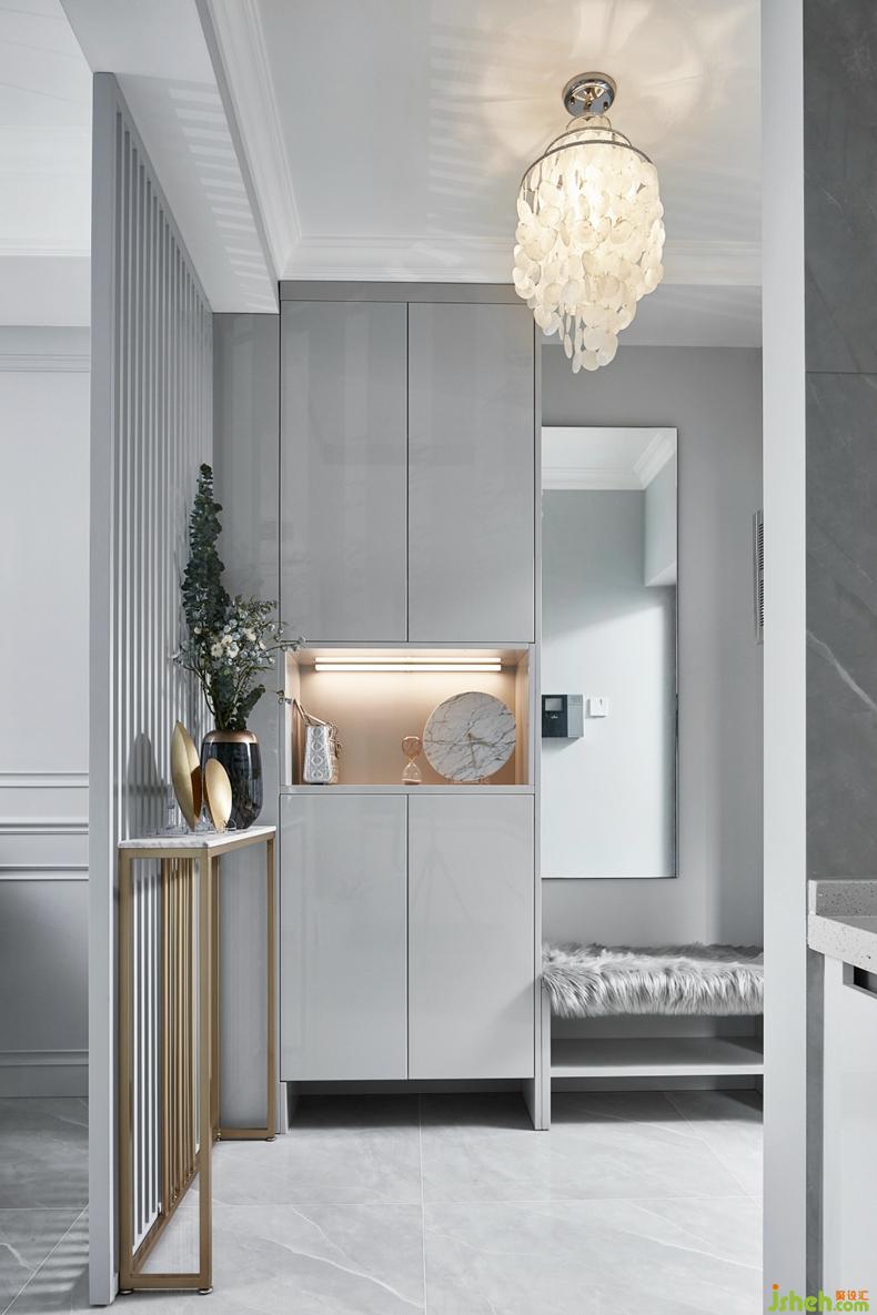 灰色調(diào)為空間的主軸線,貫穿每個(gè)空間,金色的點(diǎn)綴賦予了空間的節(jié)奏與輕奢感。最讓人印象深刻是天花頂定制的貝殼吊燈,每當(dāng)開門的一瞬間,風(fēng)的輕輕吹過,帶來的是一陣悅耳的貝殼吟唱。家,隨時(shí)都在歡迎歸來的您。深圳設(shè)計(jì)公司