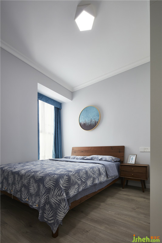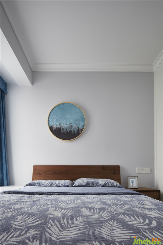 老人房的簡(jiǎn)單,源于空間特性及老人的習(xí)慣。一副畫可以讓一個(gè)空間瞬間有了點(diǎn)睛之處。寂靜森林下的實(shí)木床,自然親切,給予的是對(duì)于故鄉(xiāng)那種濃濃的相思。