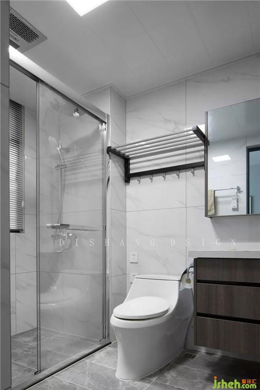 白色的大理石紋瓷磚使主衛(wèi)變得明亮。