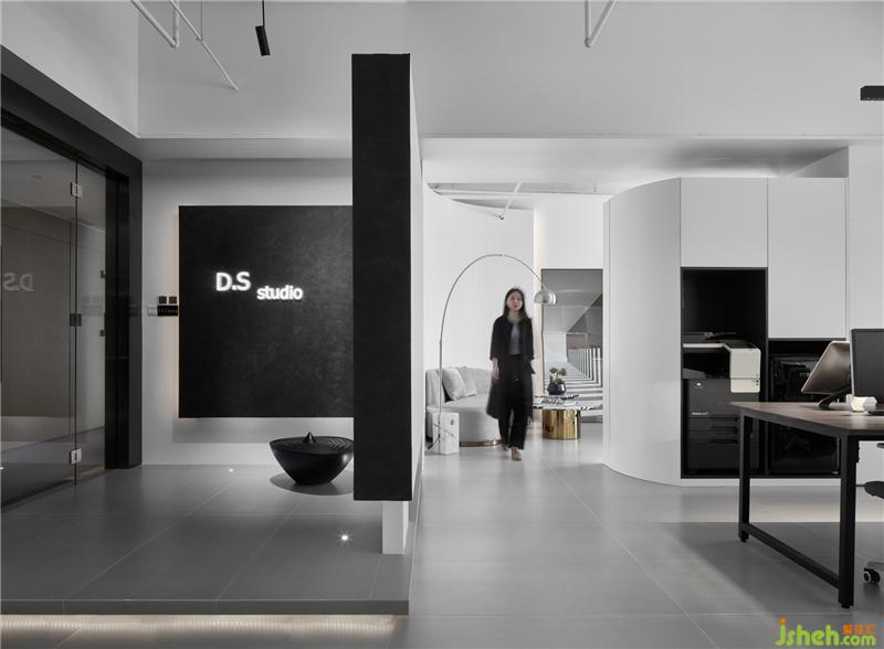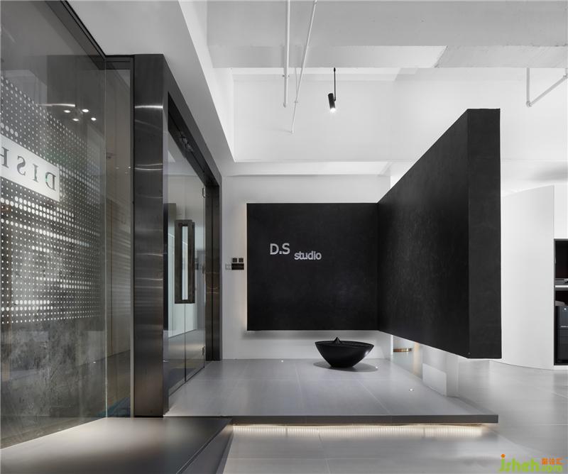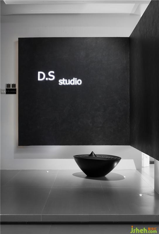 入戶處是我們的名片---“D.S studio”,辦公設(shè)計(jì)以黑色的KD板為底,設(shè)計(jì)成L型懸掛在墻面上,充滿設(shè)計(jì)感的同時(shí)又起到遮蔽的作用,讓外界對(duì)內(nèi)部保留神秘感。