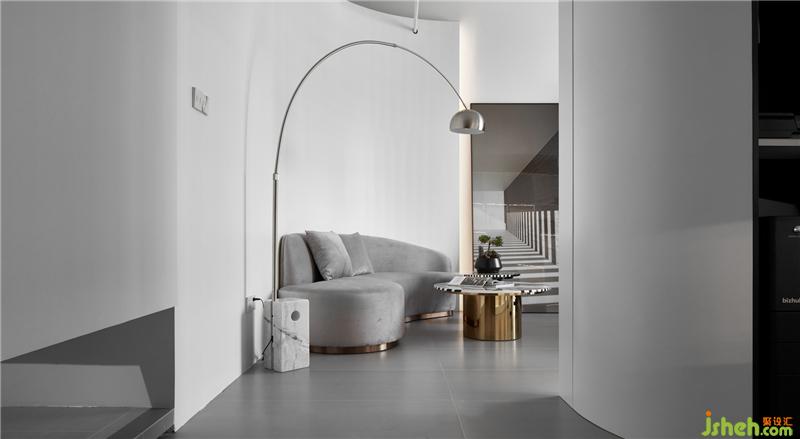 整個(gè)辦公室最大的亮點(diǎn)便是會(huì)客區(qū)。墻上的掛畫,無(wú)論是近看還是遠(yuǎn)觀,都有延伸空間的效果;而灰色絲絨沙發(fā),搭配黑白紋路的金屬大理石茶幾、造型獨(dú)特的金屬落地?zé)?,讓整個(gè)辦公室煥然一新的感覺(jué),富含藝術(shù)腔調(diào)。